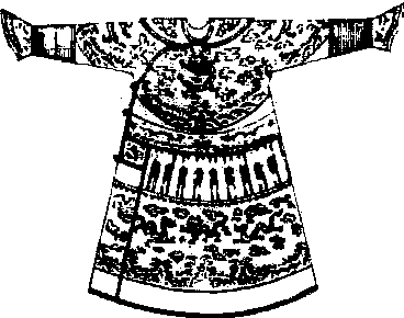 诸侯朝服(宋聂崇义《三礼图》所拟) 朝服清代满汉官员命妇官服。俗称“朝袍”。其式为大襟长袍,上衣连下裳,披肩领,熨褶素接袖 (满语称“赫特赫”),袖端为马蹄式,袍身中部为腰帷,下接襞积(打裥),底部为裳,衣长及脚,袖长掩手。以服色及纹饰辨等级。夏季多用纱地绒绣、纳纱绣及妆花或缂丝袍,春秋用缎或绸地绣花及妆花缎、缂丝之棉、夹袍,冬季则穿裘皮朝袍。清制,每年三月十五日或二十五日始穿夹朝衣,九月十五日或二十五日易裘皮朝衣。文四品武三品以下,除职掌大臣及一等侍卫外,不得用貂缘朝衣。顺治十五年 (1659) 定,王公百官服貂缘朝衣,于每年十一月十五日为始,至翌年正月十六日止。乾隆十九年(1754) 更定,十一月初一日为始,永著为例。在京官员遇常朝、祭祀日、三大节 (元旦、冬至、万寿节) 朝贺,官员到任、封印、开印均穿朝服,各省官员拜龙牌、到任、开印等亦穿之,应佩挂朝珠者,女佩挂3盘,男佩挂1盘。