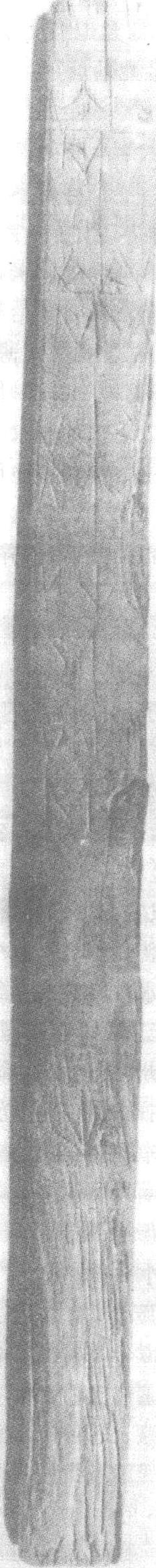 ☚ 木雕盛装女俑 浮雕五子花卉木尺 ☛ 木尺 木尺北宋。通长31.2厘米,宽2.3厘米,厚0.5厘米。1965年湖北省武汉十里铺北宋墓出土。湖北省博物馆藏。木尺等分十寸,上嵌有铜星,每寸内用短线段表示分,尺面竖刻有一行文字,已模糊不清,但仍可辨认有“皇”、“万”二字。宋代度量衡沿袭了唐制,由太府寺掌造,主要为征收布帛用,因此称“太府布帛尺”或“太府寺尺”,或“布帛尺”。又因宋初贡赋由三司使征收,也称“三司布帛尺”或“三司尺”。此尺也为民间通用,据蔡元定《律吕新书》载:“太府布帛尺比晋前尺一尺三寸五分。”晋前尺是泰始九年(公元273年)的一种“古尺”,又叫荀勖律尺,一尺合23.1厘米,此尺长31.2厘米,恰与记载比例相等。 ☚ 木雕卧虎 丝织 ☛ 木尺 木尺西汉。长23厘米,宽1.2厘米,厚0.2厘米。1976年广西壮族自治区贵县罗泊湾1号墓出土。广西壮族自治区博物馆藏。尺为木质,较完整,正面用填红漆的细线刻十寸,没有分的刻线,正中五寸处刻有十字交午线作尺心,尺的一端有孔。此尺为日常用尺。