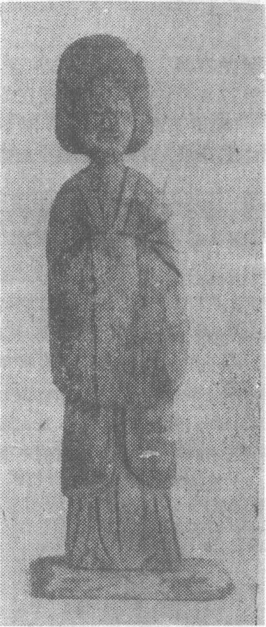 | 释义 | 木雕盛装女俑 木雕盛装女俑五代。1975年出土于江苏省邗江县蔡庄。江苏省扬州博物馆藏。桫木雕成。女俑头挽高髻,两鬓贴鬓发,上身穿长至膝的圆襟宽袖袍,下着曳地长裙,袖手立于长方形木座上,微迷着眼,脸上浮现出一丝微笑,似在遐思着什么,神态颇为生动。她的衣着纹饰虽较简单,但处理得恰到好处,有一种织物的感觉。此墓共出土木俑44件,包括男俑、女俑、动物俑和神兽俑等,并有四肢可以活动的着衣女俑。雕刻技法纯熟,造型颇具唐代人物雕刻的面部丰满、身材匀称、仪态大方的艺术风格,是五代木雕的优秀作品,也是扬州地区历年出土木俑的上乘之作。
