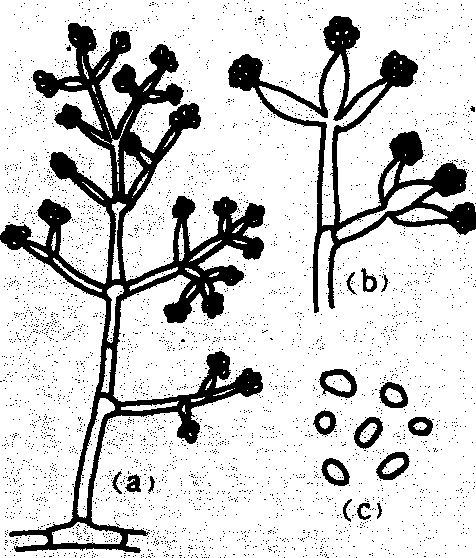 | 释义 | 木霉属Trichoderma分生孢子梗呈二叉状或三叉状分枝,分生孢子聚生成头状的霉菌,属半知菌亚门丝孢纲丝孢目丛梗孢科。菌丝有隔,分枝繁复。分生孢子梗为菌丝的短侧枝,其上对生或互生分枝,还可有二级、三级分枝,呈锐角或近似直角,似松柏树枝状。分枝末端为束生、对生、互生或单生瓶状小梗。分生孢子在小梗顶端靠粘液聚成球形或近球形的孢子头,有时几个孢子头汇成一个大的孢子头,分生孢子近球形或椭圆形、圆筒形、倒卵形等,壁光滑或粗糙,透明或亮黄绿色。一些种有厚垣孢子,间生于菌丝中或顶生于菌丝短侧分枝上,球形、椭圆形,无色,壁光滑。菌落生长迅速,棉絮状或致密如毡,产孢丛束区常排列成同心轮纹,表面为不同程度绿色,反面无色或有色,气味有或无。已知子囊菌中的红棕肉座菌(Hypocrearufa)是绿色木霉(T.viride)的有性阶段。