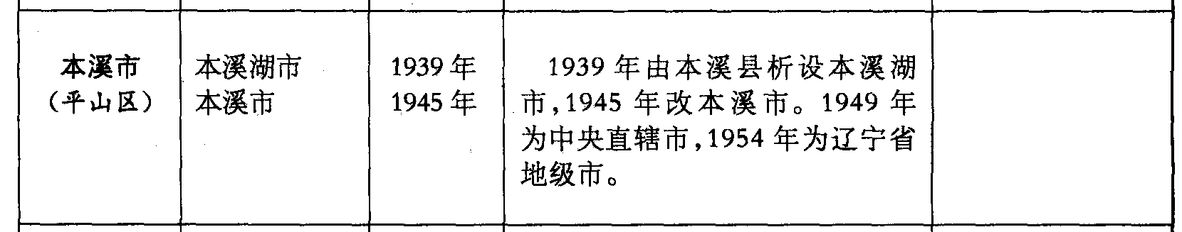 本溪市(平山区)本溪湖市本溪市1939年1945年1939年由本溪县析设本溪湖市,1945年改本溪市。1949年为中央直辖市,1954年为辽宁省地级市。