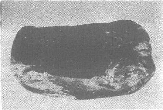 清。长16.2厘米,宽11厘米,厚4.7厘米。北京中国历史博物馆藏。广东肇庆端石,质地温润细腻。砚作长方形,半琢半璞,自然大方,古朴浑厚;砚堂浅凹,砂磨水蚀而成凹凸不平的“水蛀”为砚池;背镌刻朱彝尊铭:“刵聘之耳,灭释之闻,宣孔之旨。”下款铭“彝尊”二字。朱彝尊,清(公元1629—1703年),浙江秀水人,字锡鬯,号竹坨,康熙时举博学鸿词,是清代浙西词派的开创人,精金石学,喜收古砚。