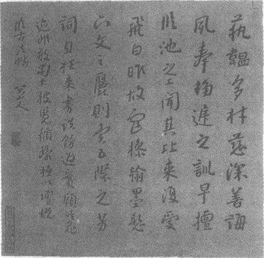 清。纸本。纵32.9厘米,横33.9厘米。江苏省扬州博物馆藏。朱耷(明天启六年—清康熙四十四年,即公元1626—1705年),明太祖朱元璋第17子宁王朱权的后裔,谱名统𨨗,字雪个,号八大山人。一度为僧,僧名传綮、刃庵、个山、个山驴、个屋、驴屋,又当道士,道号良月、道朗、破云樵者。江西南昌人。诸生出身,明亡后更姓换名,初剃度为僧,后为道士。顺治十八年,于南昌建“青云谱”道院,主持其事,康熙二十四年被奉为“青云谱”开山祖。性颠狂且孤介,嗜酒,为清初杰出的画家。擅山水花卉禽鸟,笔墨精练,形象夸张,风格独异,具清、奇、狂、冷的特色,对后世影响极大。书法师承二王和颜真卿、苏轼,具有朴茂沉雄的格调,兼秀丽灵动的情韵。加之受到王宠的影响,博采众长,自成一家,极富个性。清张庚《书征录》云:“八大山人有仙才,隐于书画,书法有晋唐风格。”清杨宾《大瓢偶笔》云:“八大山人虽指不甚实,而锋中肘悬,有钟王气。”清邵长蘅《八大山人传》云:“山人工书法,行楷学大令、鲁公,能自成家,狂草颇狂伟。”清吴修《昭代尺牍小传》云: “书有别趣。”《清史稿》卷五百四有传。此行书是朱耷临古法帖:“蓺韫多材慈深善诲凤奉趋庭之训早擅临池之工闻其比来复爱飞白昨故戏操翰墨惭六文之丽则异五际之芳词忽枉来书谈饰过实顾唯藏迹非敢当仁披览循环只以增慨。”款署:“临古法帖,八大山人。”款下钤白文:<拾得>印。综观全书,一笔一画在秃笔中锋的流动下,形成一种雄泻老辣的气势,巧妙地写出了尖锋所不能有的笔致情态。行笔苍劲圆润,凝重平稳。章法疏朗,错落有致,在丰富的变化中自有一种浑朴酣畅,明朗秀健的韵律感。突出表现了朱耷书体独具特色的个性。