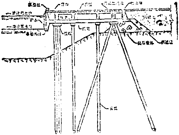 也有称梁板式高桩码头。桩台由面板、纵梁、横梁及靠船构件等组成的一种高桩码头。这种结构受力明确,跨度可以较大,桩力可以得到充分发挥,能适应门式起重机、火车等连续集中荷载。但它构件较多、安装工作量较大,且要求有较低的施工水位。是目前采用较多的一种码头结构型式,适用于软弱地基。如图示。