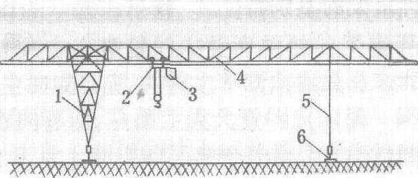 桁架式装卸桥图 箱形装卸桥 主梁、支腿和大车底梁全部用钢板焊成矩形断面。起重小车为悬臂偏轨式,有3个支点。垂直方向的车轮只承受木捆重量和小车自重的垂直载荷,而木捆和小车偏心引起的倾覆力矩由其他两个水平车轮承担。起重小车只有自行式一种,有主钩和副钩。林区只采用单钩型式。装卸桥的支腿有C型、L型和O型数种。在单主梁结构中用C和L型,双主梁结构中用O型。 参数 起重量是装卸桥的主参数,在3~12.5吨间选用。吊钩作业时多数采用5吨;抓具作业时,采用8吨。两支腿间距为跨度,因跨内归放原木楞堆,跨度不宜太小,多数采取50~60米。悬臂长既要满足生产工艺的需要, 又要考虑钢材经济用量的要求, 通常在5~17米间选取。两悬臂可以是等长的,也可以是不等长的。起升高度主要取决于原木楞堆的高度和采用吊具的型式,一般取12~13米。速度有起升速度、小车运行速度和大车运行速度。起升速度一般取20~30米/秒,小车速度70~100米/秒,大车速度30~50米/秒。 展望 在中国贮木场中,多数装卸桥是就地制作、施工和安装。因此,宜采取桁架结构。但这种结构的件数多、焊缝多,不易检查和维修。随着专业化生产和科学管理的发展,箱形结构的装卸桥会更多地得到采用。为提高装卸桥的作业效率,应采用木材抓具以替代吊钩和捆木索;在大车底梁处设置重力式原木捆齐头器,并研制可靠的夹轨器。 |