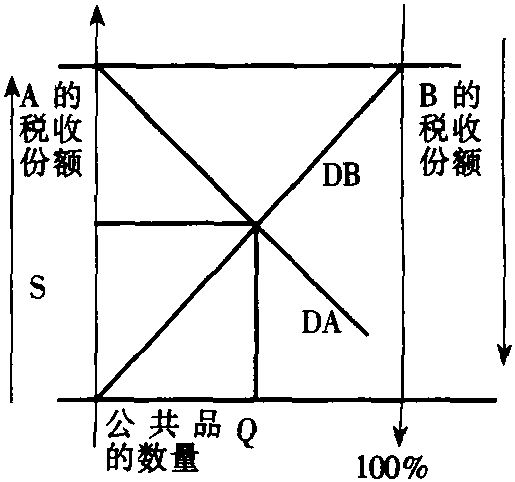 | 释义 | 林达尔模型Lindahl model又称“自愿交换模型”,分析公共品提供的方法,它试图建立一些条件,在这些条件下,公共品可以根据一致的协议而不是强制性地提供。这与现实中公共品的提供正好相反,通常所看到的公共品的提供是通过强制性征税而不是通过自愿协议来筹集的。针对在自愿的基础上如何确定公共品提供的水平问题,林达尔提出了他的模型来解决这个问题。模型要求个人缴纳的税率正好等于个人从货物中得到的边际效用。如下图所示: 该图中,沿横轴是公共品数量,沿纵轴是AB两人愿意提供的税收份额。DA表示A在他的税收份额的不同水平上偏好的公共品数量,从左上到右下,随着其税收份额的下降,他偏好的总公共品数量也增加。DB的解释与DA相似,只不过在图中数轴是反方向的,从左下到右上,随其税收份额的减少,其偏好的公共品的数量增加。林达尔均衡就是在S的税收份额分配下,生产Q的公共品的数量。该模型中,公共品的提供方式保证了每个人都可以从它的提供中受益。但在其实际应用中,有关达成一致协议的问题和个人可能不会显示他们真实的社会偏好问题,对这个模型的有用性提出了挑战。