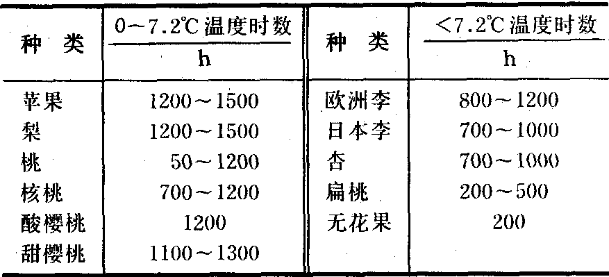 温度 ❶温度与果树的生态型。年平均温度和冬季低温, 决定果树的生态类型。主要果树的适栽温度(年平均气温)如表1。温带落叶果树有自然休眠期,当进入休眠后, 需要有一定的低温量才能解除休眠、恢复生长, 各种果树要在小于7.2℃条件下经200~1500小时方可解除休眠(表2)。冬季温度过高,春天萌芽延迟或不萌发, 冬季温度过低易产生冻害。 ❷温度与营养生长。落叶果树生物学零度为3~10℃, 常绿果树为10~15℃; 20~30℃时, 体积增长最快; 35℃以上高温, 不利于果树生长。 ❸温度与生殖生长。果树开花早晚受气温控制, 苹果、桃等大部分落叶果树, 花前40天左右平均最高气温累积值和开花早晚成负相关,由此可预测花期。开花期温度影响性器官的发育,一般果树花粉在4.4℃以下发芽受抑制, 多数果树花粉发芽适温为20~25℃左右。 ❹气温与果实品质。温度较高, 果实含糖量高, 色鲜, 品质好; 但温度过高反而有害。昼夜温差大, 糖分积累高, 口味重。生育期的有效积温高, 则果实含糖量高。果实细胞分裂期的温度影响果型。高温地区或高温年份果型较扁, 气温冷凉则果型较长。 表2 果树打破休眠期所需的低温量 ![]() 光 日照时数、光照度和光质都影响果树的生长发育和产量品质。各种果树对光需求不同,在落叶果树中以桃、扁桃、杏、枣最喜光. 苹果、梨、沙果、李、樱桃、葡萄、柿、栗次之, 核桃、山楂、猕猴桃较耐阴, 常绿果树中以椰子、香蕉较喜光, 杨梅、柑桔、枇杷较耐阴。❶光照度和生长发育。光照充足时, 果树多形成短枝密集, 削弱顶芽枝向上生长, 而增强侧枝生长点的生长,树冠紧凑, 树姿开张。缺光(遮光或长期阴雨天)时则表现为徒长, 枝叶较弱, 黄化,根系生长也明显受到抑制。花芽形成数量随光照强弱而增减,所以果树花芽形成在树冠外围受光部位最好, 产量可占全树60%~80%。过度密植的果园,往往仅在树冠顶部日光照射部分着生花芽。 ❷光照度和果实品质。果树在通风透光条件下, 果实着色良好, 糖和维生素C含量高, 耐贮性好。1966年加拿大D.R.海尼克认为光照度在70%以上时苹果着色良好,70%~40%时可部分着色, 40%以下不着色。光照度在50%以下时果实重量小。 ❸光能利用与果树产量。果树对光能利用率取决于树冠大小, 树体结构及叶面积指数。合理的树体结构, 其标准是树冠中的有效容积大。一般圆型树冠从外向内分为4层,光量由外向内递减,分别为100%~71%, 70%~51%, 50%~31%和30%以下, 最内层常为非生产区,几乎失去结果能力(图2)。对果实品质来说最好的受光量为60%以上。