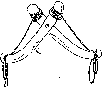 (名)牛拉东西时架在脖子上的器具,由两根木棒作人字形制成。