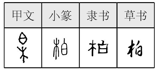 柏 柏 柏柏与松并称,也是百木之长。王安石《字说》释柏云:“柏犹伯也,故字从白。”伯为公侯伯子男五爵的第三等,松为公,柏为伯,正说明松柏地位的相近。