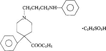 | 释义 | 乙磺酸去痛定[中] C23H30N2O2·C2H6O3S=476.63 CAS-7081-52-9 1-[3-苯胺基丙基]-4-苯基哌啶-4-羧酸乙酯单乙烷磺酸盐。 4-Phenyl 1-[3-(phenylamino)propyl]-piperidine-4-carboxylic acid ethyl ester,monoethanesulfonate. 镇痛药。 乙磺酸匹米诺定。 Piminodine Esylate,Priminodine Esylate,Piminodine,Ethanesulfonate,Alvodine Ethanesulfonate. 去痛定注射液。 NF,USAN,MI.