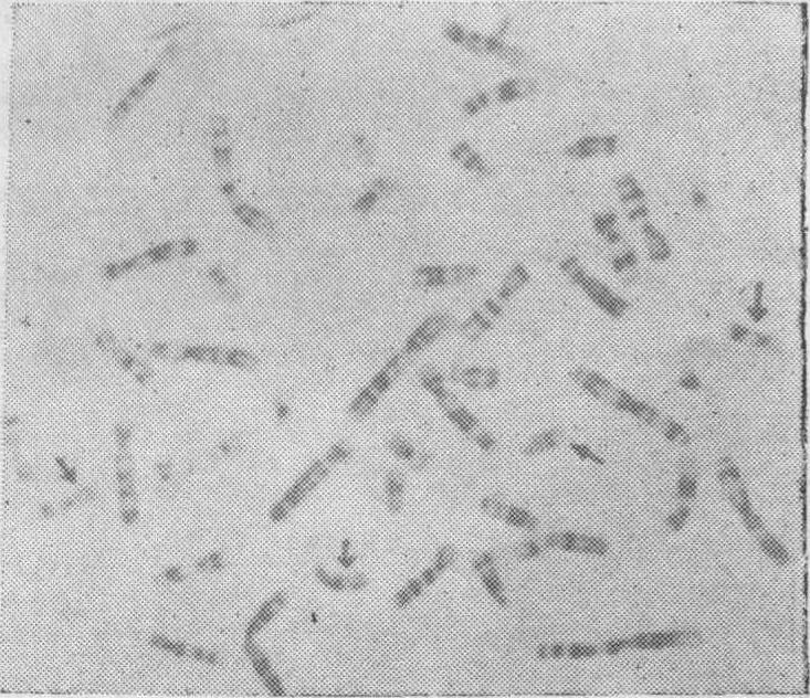 图10 一个核内复制的中期染色体照片