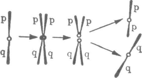 图22 示单条染色体的长短两臂同时各发生一次断裂后可能引起的染色体结构畸变