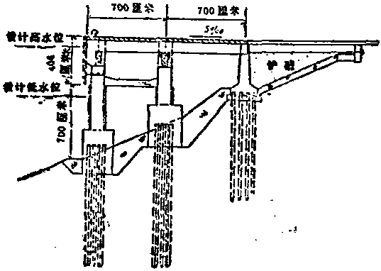 | 释义 | 柱式码头 柱式码头一种下部结构是柱形基础。上部结构为一般梁板结构的码头。近年来由于管柱基础的设计施工技术迅速发展,预制装配式空心管柱基础获广泛使用。一般管柱直径较大(0.8~1.5米以上),外壳用钢板或钢筋混凝土制成,下沉完毕后,在管内回填混凝土。管柱底端下沉至岩层或坚硬土层,承载力高,故上部结构可采用较大的跨度。同时管柱的刚度大,能承受较大的水平力,不需设置斜桩或锚碇设施。适于岩基或坚硬土层及水位差大的情况下采用。采用管柱,需有一套预制、下沉的专用施工设备。如图示。