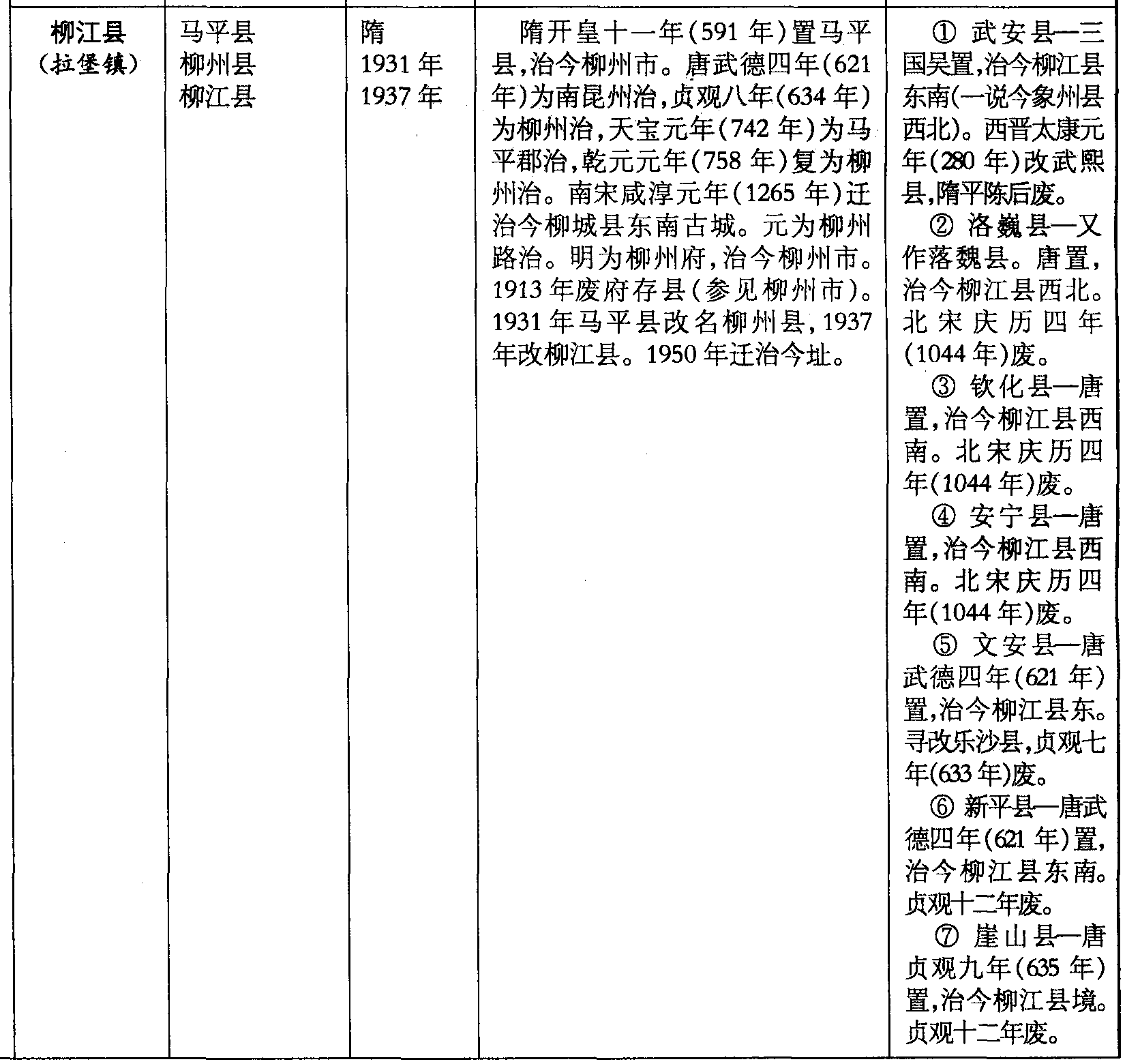 ❺ 文安县—唐武德四年(621年)置,治今柳江县东。寻改乐沙县,贞观七年(633年)废。