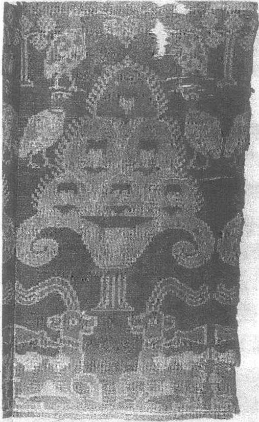 | 释义 | 树下对鸟对羊纹锦 树下对鸟对羊纹锦高昌。长26厘米,宽13.6厘米。1959年新疆维吾尔自治区民丰北大沙漠一号墓出土。新疆维吾尔自治区博物馆藏。此锦以绿色为地,是二重组织的经锦。主体花纹是隋唐时代西域流行的塔形树纹,树下为对称的长角卧羊,树梢两侧为对鸟,塔形树纹之上,又有一对嘴衔忍冬叶的鸟纹,其旁为葡萄藤。织锦以层次状的轮廓表现花纹,动物纹近似现实动物的姿态。花纹由一组绛红、土黄、棕色的彩条经显花,另一组浅棕色经作勾边线,花纹作横向排列,织造时将“花本”按倒顺循环提花,使纹样成对称状。