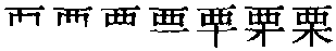 lì栗,象形,甲骨文、金文象栗子树之形,下为树干,树枝上有果实,果实带有芒刺,本义为一种落叶乔木,也指这种树木的果实。小篆字形稍变。假借为因畏惧、寒冷而发抖。慄,形声,从心,栗声,因畏惧而发抖。凓,形声,从冫或仌(冰),栗声,因寒冷而发抖。《异体字表》以“慄”“凓”为异体字。 【辨析】 ❶“栗”与“慄”“凓”不是等义异体字。 ❷以“栗”作音符构成的形声字一般读lì:傈、溧、篥。 【构词】 栗子(栗子)∣战栗(戰栗∕戰慄)∣不寒而栗(不寒而栗∕不寒而凓)栗 (lì)𠧪,垂皃。栗實下垂也。 【按】𠧪,音tiáo,草木實垂𠧪𠧪然。 栗,《説文》釋爲“木也”,屬於大名訓小名。栗是喬木的一種,其果實爲堅果,稱作“栗子”。 栗 ☚ 師 真 ☛ 00001403 |