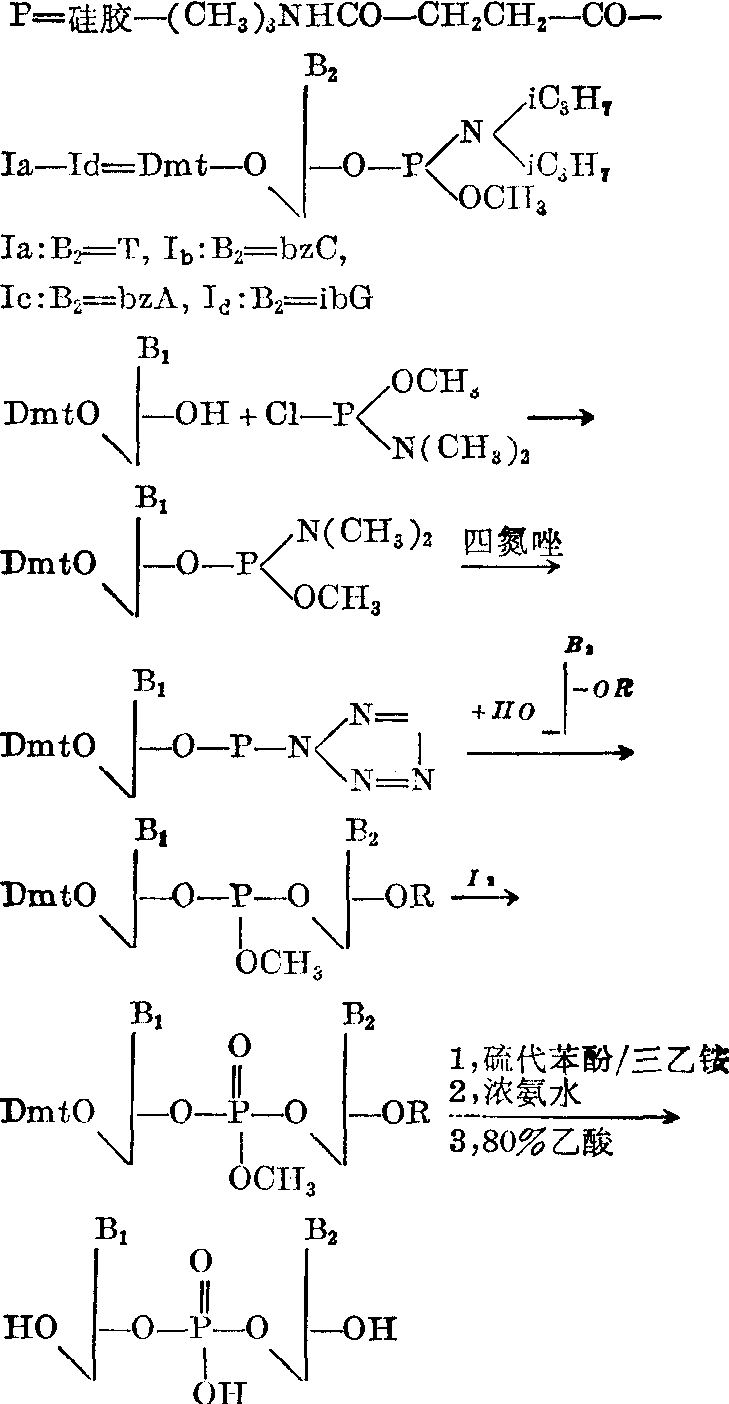 图2 用固相亚磷酸三酯法合成二核苷酸