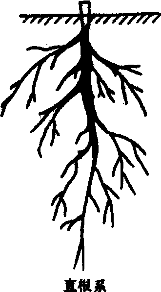 图 1 果树根系的类型 按根系形态分: 由胚根向地生长而成的初生根称主根, 主根上发生的分枝称侧根, 侧根长到一定长度又可分出新的分枝为须根。在土壤中垂直向下生长的根称垂直根, 而沿水平方向生长的根称水平根。 按根系功能、构造分: ❶延长根(生长根)。具初生组织的新生根, 白色, 有强大的分生组织, 生长较快也较长, 可达10~25厘米以上; 由它继续延长能扩大根系的分布范围, 使根系进入新的土层, 并分生侧根; 延长根还具有吸收能力, 随着向前延伸, 其后部逐渐分化次生结构,有的可以成为骨干根。 ❷活跃根。也称营养根, 是白色具初生结构的根, 数量很多, 在根系生长最旺时, 可达总根量的90%以上; 活跃根大部分不能转化为次生组织, 其寿命一般是7~25天,长度为0.1~4毫米, 直径0.3~1毫米;活跃根具有大量根毛,能从土壤中吸收水分和营养物质,并能转化为有机化合物及活性物质,具有高度的生理活性;活跃根的多少对果树营养状况和生长发育的关系极为密切。 ❸过渡根。也是初生组织的根,淡黄色至黄褐色, 由延长根或活跃根转化而成。其中, 小部分发展成为输导根, 大部分则自疏枯死。通常将活跃根及过渡根统称为吸收根。 ❹输导根。由过渡根发展而来, 是次生结构的根, 如继续生长可形成骨干根。输导根将吸收根吸收或转化的水分和营养物质运输到地上部, 同时也把地上部合成的有机营养输送到并具有贮藏功能(图2) ![]() 图 2 果树的根系1.延长根; 2.活跃根;3.过渡根; 4.输导根整个根系, 。根的分布 根系在土壤中分布深度和范围依土壤、树种、砧木等而异。桃、樱桃、梅等分布较浅, 梨、柿、核桃等分布较深,柑橘、苹果等介乎其问。矮化砧的水平根发达, 而乔化砧垂直根发达。多数果树水平根分布层在地表下8~40厘米间,伸展范围一般是冠径的2~3倍。在土层深厚肥沃或经常肥培的果园, 水平根分布距离小, 细根多; 在干旱瘠薄土壤条件下, 根延展远, 而细根少。垂直分布深度取决于土层厚度和土壤理化特性,土质疏松、通气好的土壤, 垂直根发育强大而深; 地下水位高、粘重或有砾石层的土壤, 则限制垂直根向下延伸。一般成年果树的根可深达2~3米或更深, 有时根可沿土壤孔隙向下延伸达10余米。银杏、核桃、栗等具有强大的垂直根, 而多数核果类果树垂直根不发达, 柚、酸橙、甜橙的根系较金柑、枳、柑与橘为深。由胚根延伸的垂直根比茎源根系的垂直根发达。垂直根可以从较深的土层中吸收水分和营养物质, 但吸收量远远少于水平根系。 根的生长 果树根系没有自然休眠, 全年只要具备生长所需的条件, 随时都有新根生长。通常果树根系生长有周期性, 一年中发生的次数、各期的生长强弱、根类的组成, 受树种、品种、树龄、产量、地上生长发育状况等内在因子以及土壤条件和管理措施的