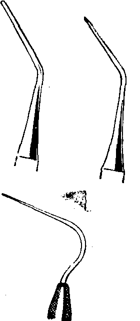 ❼根管充填器:均为长柄,工作头为光滑的圆锥形针,顶端为平截面,分为直、弯两种,直的用于前牙,弯的用于后牙,有粗细不同的四种规格,用以推送牙胶尖(图8)。