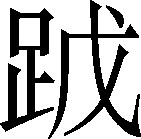 跌;疾,超越。例:跑了个快,看把你~得跌死了着!❍ 这人过来过去地,~逭得很,不知咋样给人骚轻才好!《汉语大字典》:“栽,跌。”五代徐锴《说文系传》:“,超越也。”注:《集韵》音,王伐切。《广雅》:“,疾也。”