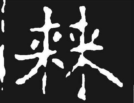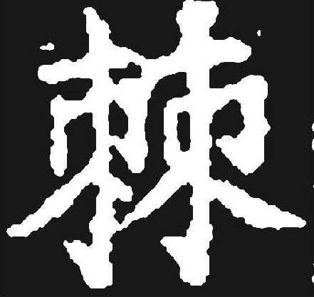 棘 篆 隶jí 【析形】 会意字。古文字形从二朿,朿是刺的本字,从朿表示与刺有关。【释义】 《说文》:“小枣丛生也。”本义指酸枣树。枣树枝上有刺,故泛指有芒刺的草木。[披荆斩棘]砍伐荆棘。比喻扫除前进中的困难和障碍。【shape analysis】 It is the associative character. In ancient character its meaning is related to two 朿(cì, bouquet)which is the origin of 刺( cì, thorn). It relates to the thorn. 【original meaning】 The jujube tree.