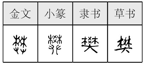 棥·樊fán会意字。金文下部为两只手。意思用手把树木交叉编成为一种篱笆似的防护墙。本义为篱笆。《诗·齐风·东方未明》:“折柳樊圃,狂夫瞿瞿。”引申为“樊笼”。作声符生成的字有: fán 礬(简化为“矾”) pan 阴平:攀(攀登) 去声:襻(扣襻,扣住纽扣的套) lán 婪(或作“惏”,据说商纣王生活奢侈,酒池肉林,故贪食曰“婪”) 相关链接 沈兼士认为:樊,以“棥”作声符;焚,也是以“棥”(省)为声;烦,以“焚”(省)为声(见《广韵声系》507~508页)。与“焚”相类的应还有“婪”。 40.趣談“樊”字樊,從金文和篆文看“棥”下已有一雙手,看來樊是“攀”本字。