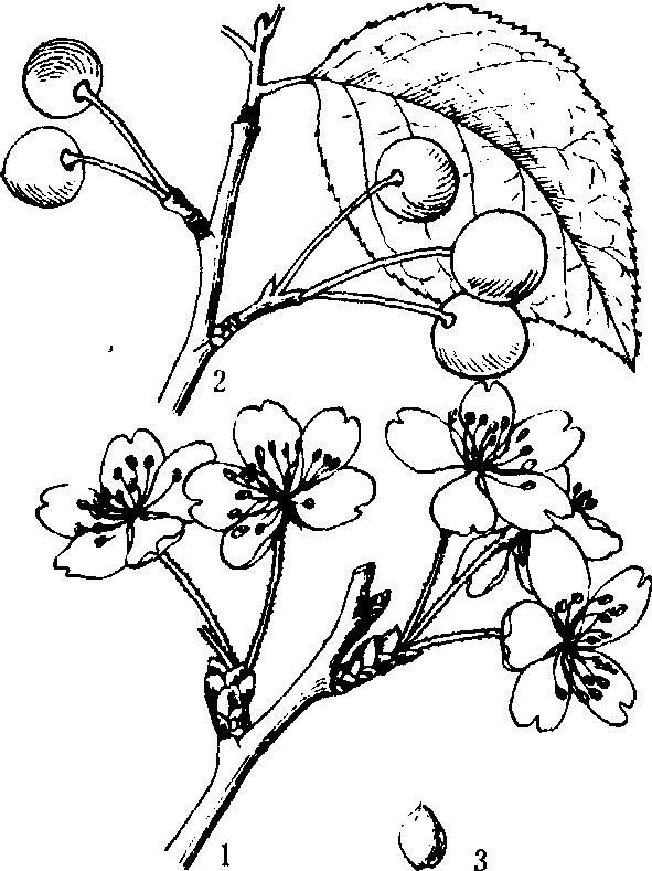 樱 桃 欧洲甜樱桃为乔木, 高10~20米。树势强健, 枝干直立。叶大而厚, 卵形或长卵形; 叶柄暗红色, 有1~3个红色蜜腺。花大,白色。果实圆形或卵圆形,直径1~2厘米; 果皮黄、红或紫色;果肉有软肉和硬肉,味甜。 欧洲酸樱桃为小乔木或灌木, 易生根蘖, 枝条细长密生。叶小而厚, 灰绿色, 卵形或倒卵形。果实圆球形, 直径7~8毫米, 果皮红色或紫红色, 果皮与果肉易分离, 味酸, 品质较差。 生长结果习性 中国樱桃寿命可达50~70年, 栽后3年开始结果, 12~15年进入盛果期, 大量结果延续年限为15~20年。欧洲甜樱桃寿命可达80~100年,栽后4~5年开始结果, 15年左右大量结果, 盛果期延续约20年。欧洲酸樱桃枝干寿命不过10~15年, 因萌蘖力强, 不断更新, 树的寿命可达数十年, 栽后3年开始结果, 7~8年后即大量结果。 樱桃的芽有纯花芽和叶芽两类。枝条顶芽都是叶芽; 腋芽单生, 只形成一个叶芽和花芽, 只有生长健旺的欧洲酸樱桃树才具有少数多芽并生的复芽。幼树或旺枝的腋芽多叶芽, 大树或弱枝的腋芽多花芽。叶芽形成新枝、扩大树冠和增加结果部位; 花芽只能开花结果,结果后即成光秃。一花芽内形成2~7朵花,中国樱桃和欧洲甜樱桃4~6朵, 欧洲酸樱桃3~4朵。萌芽力以中国樱桃和欧洲酸樱桃最强, 1年生枝上几乎所有芽都可萌芽, 欧洲甜樱桃萌芽力较差, 但隐芽寿命长, 容易更新。 樱桃的枝条因具有侧芽结果习性, 各级枝的延长枝上常同时具有花芽和叶芽, 成为混合枝。欧洲甜樱桃大部分品种以花束状果枝结果为主, 中国樱桃、欧洲酸樱桃多以长、中、短果枝结果为主。 物候期 在辽宁省南部, 于4月上、中旬花芽萌动, 4月下旬开花,在开花前叶芽萌发, 中国樱桃开花最早在山东泰安为3月下旬, 欧洲甜樱桃居中在山东烟台为4月中下旬, 欧洲酸樱桃最晚。樱桃花芽分化在果实成熟后开始, 约40~50天完成。中国樱桃和欧洲甜樱桃的休眠期很短,早春气温回升后易于萌动,遇有春寒, 常受冻害。 对环境条件的要求 樱桃耐寒力弱, 要求年均温12~14℃。一般在气温达-20℃时即受冻害, 而花蕾期气温达-5.5~-1.7℃、开花期和幼果期-2.8~-1.1℃即可受害。中国樱桃在日平均7~8℃, 欧洲甜樱桃在日平均10℃以上开始萌动, 15℃以上时开花,20℃以上新梢生长最快, 20~25℃果实成熟; 对低温的适应性品种间有差别, 以甜樱桃杂交种较强, 软肉品种次之, 硬肉品种较差。 欧洲甜樱桃要求土层厚、土质松、通气好、有机质丰富的沙质壤土。土壤pH值在6~7.5条件下生长结果良好。忌地下水位高、盐渍化土壤和粘性土壤。土壤水分过高, 会引起徒长, 不利结果; 而在果实成熟前5月至6月间土壤干旱, 会引起大量落果。 樱桃为喜光树种, 尤以欧洲甜樱桃特别喜光, 中国樱桃较耐阴。 主要品种 现在世界上主要栽培种仅3个, 即中国樱桃Prunus pseudocerasus Lindl.、欧洲甜樱桃P.avium L.、欧洲酸樱桃P. cerasus Ledeb., 而栽培最多的是前两种。 中国樱桃 品种有❶大紫樱桃。又名大鹰嘴樱桃。产安徽太和县。树形直立,树势旺盛, 丰产。果较大,卵圆形, 先端突出, 形似鹰嘴; 果柄细长,果皮较厚,完熟后呈紫红色, 有光泽; 果肉黄白色,味甜多汁;离核。品质上, 5月上旬成熟。 ❷东塘樱桃。产江苏南京近郊。树形高大, 枝条直立, 叶大色浓而厚。果圆形,紫红色。丰产, 5月上旬成熟。 ❸大窝娄叶。因叶片皱缩向后反卷而得名。产山东枣庄一带。果较大, 圆球形或扁圆形;果皮暗紫红色, 有光泽; 果肉淡黄色,味甜微酸,有香气, 可溶性固形物含量17.3%。品质上,丰产,较耐贮运。 ❹崂山樱桃。产山东青岛。果较大,平均重2.5克,长心脏形,先端尖, 果尖偏斜是其特点;果皮橘红色,有光泽; 果肉淡黄色, 多汁, 味甜酸;离核。5月中旬成熟。 欧洲甜樱桃 品种很多,在中国栽培较普遍的有:❶那翁(Napoleon)。是目前栽培较多、分布较广的品种。树势强健, 树冠大而开张, 分枝力弱, 以短果枝和花束状果枝结果为主。果较大, 重6.5~7.2克, 心脏形或长心脏形, 果形整齐; 果皮乳黄色,有光泽,皮厚, 不易分离; 果肉浅黄色, 致密而脆硬, 多汁, 味甜微酸。品质上, 6月中下旬成熟, 适于生食、加工。丰产, 株产可达50千克以上。 ❷大紫(Black Tarta-rin)。果较大, 平均重5.1克, 最大7.4克, 心脏形;果皮紫红色, 有光泽, 皮薄; 果肉浅红色, 软、多汁、味甜。品质上, 丰产, 6月上旬成熟, 不耐贮运。自花结实率低。如与那翁混栽,坐果率均高。 ❸滨库(Bing)。在辽宁旅大一带栽培较多。树势强健,树冠大而开张,枝条粗壮,分枝力弱, 以花束状果枝结果为主。果大,宽心脏形, 紫红色, 果肉粉红色; 离核, 核小; 果皮韧, 汁多, 酸甜适中。品质上, 6月中下旬成熟。 欧洲酸樱桃 中国栽培很少, 品种也不多, 目前山东烟台只有毛杷酸(Early Richmond)。果小,纵径1.4~1.5厘米, 横径1.7~1.8厘米, 平均重2.9克,扁圆球形; 完熟后深红色, 有玻璃般明亮光泽; 果肉橘黄色, 软肉多汁, 味酸, 品质中等。6月中下旬成熟,丰产。 栽培技术要点 繁殖 中国樱桃和欧洲酸樱桃分株法繁殖, 也可用扦插、压条等法繁殖; 欧洲甜樱桃需用嫁接繁殖。 分株是利用母株基部萌蘖,于2月中下旬培土,翌年春除去培土, 剪取生根苗进行栽植。嫁接繁殖先培育砧木苗, 砧木多用中国樱桃、青肤樱桃(P. serru-late Lindl.)和马哈利樱桃(P.mahaleb L.),欧洲多用马札德(Mazzard)作砧木。欧洲酸樱桃也可作砧木,但易出根蘖和受根癌病为害。嫁接