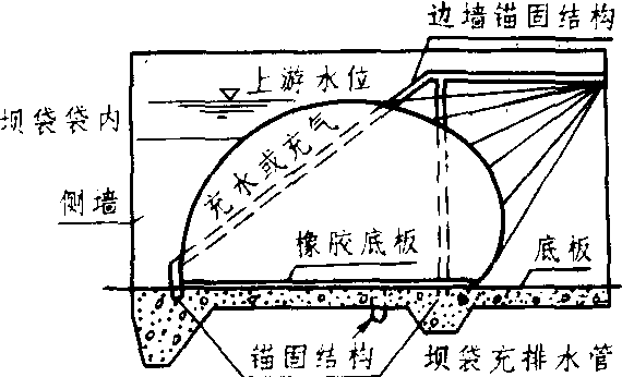 | 释义 | 橡胶坝flexible dam用化纤帆布与橡胶黏合制成密封橡胶布袋,充水或充气使之膨胀而成的挡水坝。用螺栓锚固于闸底板及侧墙上。坝顶可以溢流。调节袋内水、气量,便可调节坝高,控制上游水位和流量,起控制水流的作用。如不需挡水时,只要将坝袋放空,便可平铺于底板上,使水流下泄无阻。结构简单、经济,发展迅速,可作为拦河闸坝、溢洪道、节制闸、分水闸、船闸闸门、施工围堰、丁坝、顺坝等,应用颇广。但建坝材料易磨损、老化,抗御上游漂浮物的能力较差,有待改进。