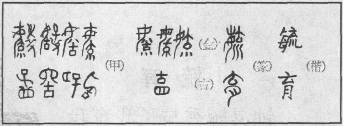 甲骨文一款的毓,是加拿大人明义士的摹作,其摹本现藏于加拿大皇家博物馆。由左右两部分组成,左边为一成年女性臀下生一倒子,“子”下的三点可释为衣破人出; 右边上从“Ψ”,中为“衣”,下为“又”(手)。“Ψ”像婴儿胎发,“衣”是襁褓,“手”为持举。整个字形为我们提供的信息是: 左为产子之状; 右为对婴儿的环境处理。二款的字形是孙海波先生摹作的。左边与一款大同, 右边上为“子”, 中为“⋃”(甲骨文“皿”,在这里作盆钵一类的盥洗器皿),下为手。整个字形为我们提供的信息是: 妇人产子以后为婴儿盥洗。三、四款的毓,均是对一、二款的简约,所不同的是三款女下有一“八”,八有分蘖之意,八为阴数,是八卦易经体“‖”的演绎体,在这里是女阴与分娩的标意。 金文三个款式,在甲骨文基础之上其结构虽有增删,但却不失原来韵味。小篆的毓,从每从流省(有关“每”的原始的真实含意,《母每 始母头上的莱草桂冠》一节已经有过交代,这里不再赘述)。这大概是毓与育寓意不同的根本所在。毓,英雄母亲头上高悬着母系生殖崇拜时期的旗帜“屮”和莱草桂冠,长长的流水,既是美好的自然环境的镶嵌,也寓有子孙繁衍、生生不息的韵味。因此,商王称自己的祖辈为毓匕或毓祖。毓匕己,商王武丁的祖母;毓祖乙,商王武丁对其父辈小乙的称谓。毓的顺遂之意和以其省形,组构的汉字如流、硫、琉、梳、疏、醯等都具有通顺、光滑、利便之意。 说到甲骨文一款加拿大人明义士的摹作件,就不能不使人想起殷墟甲骨出土前后一个令人难以忘却的故事。殷墟甲骨文在王懿荣的中药煎锅前被发现以后的一段时间里,在国外引起了强烈震撼,加拿大人明义士以传教士的身份1910年来中国,在中国的二十多年里以传教为名共收藏甲骨35000多片,几乎占当时出土总量的三分之一! 抗战爆发后,他匆匆离开中国,带走6000多片精品,飘洋过海回到了本国,曾撰写《殷墟龟甲文字发掘经过》 一文,发表在 《东方杂志》上。著有《商代文化——殷墟甲骨》 一书。1942年他以 《商戈研究》 为题写了一篇论文,获得了哲学博士学位。据统计,殷墟甲骨文共出土了15至20万片,相当一部分现存于外国的博物馆里,其中日本12443片; 加拿大7802片; 英国3355片; 美国1882片。发现和研究甲骨文,是20世纪初在中国发生的一件带有世界意义的文化现象,外国人蜂拥而来,将掠去的瑰宝置入自己的国家展窗,而在这之前,国人却化作齑粉,放入药锅里煮熬。对于甲骨文的不识或漠视,不仅是中华文化的悲哀,也是中华民族的悲哀! 甲骨文一款的育,从子从倒也,为会意字。(“也”,在《它也》一节中将要详细作出介绍)。也是“虫”、“它”之衍体,同时在小篆体中也具“六”与“衣”的形意,《说文》: “也,女阴也。象形”。这里的“也”是一个开口的女阴,“子”即从女阴出生的小儿。如果说“育”的这一形状看起来有点晦涩难辨的话,二款是一个180度翻转之形,看起来就比较容易一些,上部为一开口的“也”,下部是一从“也”中出生的倒子。倒子者,生人之象形。三款的“育”,在造字的构思上是另辟蹊径的。从月从子,月也声,为形声兼会意字。这里的“月”,是甲骨文早期的形体,后来曾与夕作了一次换位。在古人的观念里日为太阳,月为太阴,日为父,月为母,月在这里是女性和女阴的标意。由“月”、“子”所组构“育”字,是古代天人合一思想的体现,是造字者理性思维的高度发展,这一构思肯定被社会普遍接受,时至今日,关中农村仍将妇女生孩子称“到月子”,“月子”即是生孩子,比如说“月子要忌顾”,“月子得的病不易治”等。四款的育,从匕从倒子,为会意字。匕的音、形、意,在汉字王国里充当的角色,将在《匕土,男人与女人的最大约数》一节中介绍,相信读者朋友是会了解的。这里的“匕子”像一位蹲踞生子的妇人,其意蕴和形韵都十分丰满。古文的育是甲骨文一款的形变与讹化。小篆和楷书的育,从倒子从月,月也声,为形声兼会意字。是“月子”形体的异构。 育,是生子的标意,是人从先天到后天的一个短暂阶段,《诗经·小雅·蓼莪》:“拊我畜我,长我育我”的育,体现的正是它的本意。如果说“育”是人生起跑线的话,育出的当然都是人所共生的凡夫俗子,而“毓”就不同,“育”后不久就有“衣”、“皿”之类的美好条件在供它受用,又有一只手在捧着举着,特别是它遇上了一位头戴莱草桂冠的母亲。看来,这凡夫俗子与伟大人物的分野,就在于育和毓这两个字上了。