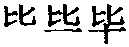 毕 毕小网长柄的捕猎器物。《小雅·鸳鸯》一章:“鸳鸯于飞,毕之罗之。”毛《传》:“鸳鸯匹鸟,太平之时,交于万物有道,取之以时。于其飞乃毕掩而罗之。”孔《疏》:“《释器》云: ‘鸟罟谓之罗。’ 《月令》云: ‘罗网毕翳。’注云: ‘网小而柄长谓之毕,毕、罗异器,故各言之。’ 《大东》传云: ‘毕所以掩兔。’ 彼虽以兔为文,其实亦可取鸟。故此《鸳鸯》言‘毕之’也。罗则张以待鸟,毕则执以掩物,故言毕掩。” ☚ 戎车 竹闭 ☛ 毕读音b·i(ˋ),为i韵目,属i—er韵部。卑吉切,入,质韵。 ❶完;完毕;完结。 ❷全;完全。如:真相毕露。 ❸古代用以捕捉禽兽的长柄网。 ❹星名,二十八宿之一。 ❺姓。 上一条: 䏶 下一条: 畢 毕〔bi〕ncad: 说~。pudncad. 毕生 〔bi sheng〕ad reux. 毕业 〔bi ye〕 bil niel. 毕畢ㄅㄧˋbì二1844①副非常;十分;极。吴语。上海〖 〗。衣裳~挺挺括‖会场里~静。上海松江:池塘里水~清‖课堂里~静无声。②名缫丝车下的绳索。古方言。《方言》第九:「车下铁,陈、宋、淮、楚谓之~。」晋郭璞注:「(车),鹿车缫丝车也。」清钱绎《笺疏》:「《玉篇》云:『紩,索也。古作铁。』据此,紩乃本字,铁其假借字也。」   毕bi❶完成,结束。同义合成词:“完毕”。李朝威《柳毅传》:“洞庭君览~,以袖掩面而泣。”(览:看。)《后汉书·郭太传》:“三年业~,博通坟籍。”(业:学业。坟:经典著作。)《荀子·议兵》:“以守则固,以攻则强,令行禁止,王者之事~矣。”(以:用来。) ❷全,都。成语:“原形毕露”。《后汉书·吕布传》:“不过旬月,军粮~尽,击之可破也。”《史记·太史公自序》:“天下遗文古事,靡不~集。”(遗文:传留下来的著作。靡:没有。) 毕畢bì❶完成;结束 △ 说~|~业。 ❷全部;完全 △ ~生|群贤~至。 ❸姓。 毕畢❶全部;完全:~生︱锋芒~露︱原形~露︱凶相(xiang)~露。 ❷结束;完:~业︱~命︱礼~︱完~︱~其功于一役。 ❸星宿名,二十八宿之一。 ○~恭~敬(形容十分恭敬的样子)。 毕bì❶ 完成,完工:毕其功于一役。 ❷ 全部:毕露|嘉宾毕至。 ❸ 姓。 毕bì程度副词,相当于全,尽。《七谏·怨世》:“羌两足以毕斫。” 毕bi毕竟 毕力 毕露 毕命 毕生 毕肖 毕业 毕姻 毕志 哀毕 礼毕 默毕 完毕 毕业式 毕恭毕敬 毕力同心 毕力以赴 毕生不忘 毕业典礼 毕业证书 锋芒毕露 原形毕露 毕其功于一役 毕bì❶ 完结;终结:当下李纨、迎、探等姊妹们亦也来定省~,各自归房无话。 (七·162)说话时,刘姥姥已吃~了饭,拉了板儿过来,舔舌砸嘴的道谢。(六·145) ❷全;尽:倏尔神鬼乱出,忽又妖魔~露。(十九·404)那媳妇越浪,贾琏越醜态~露。(二一·474)