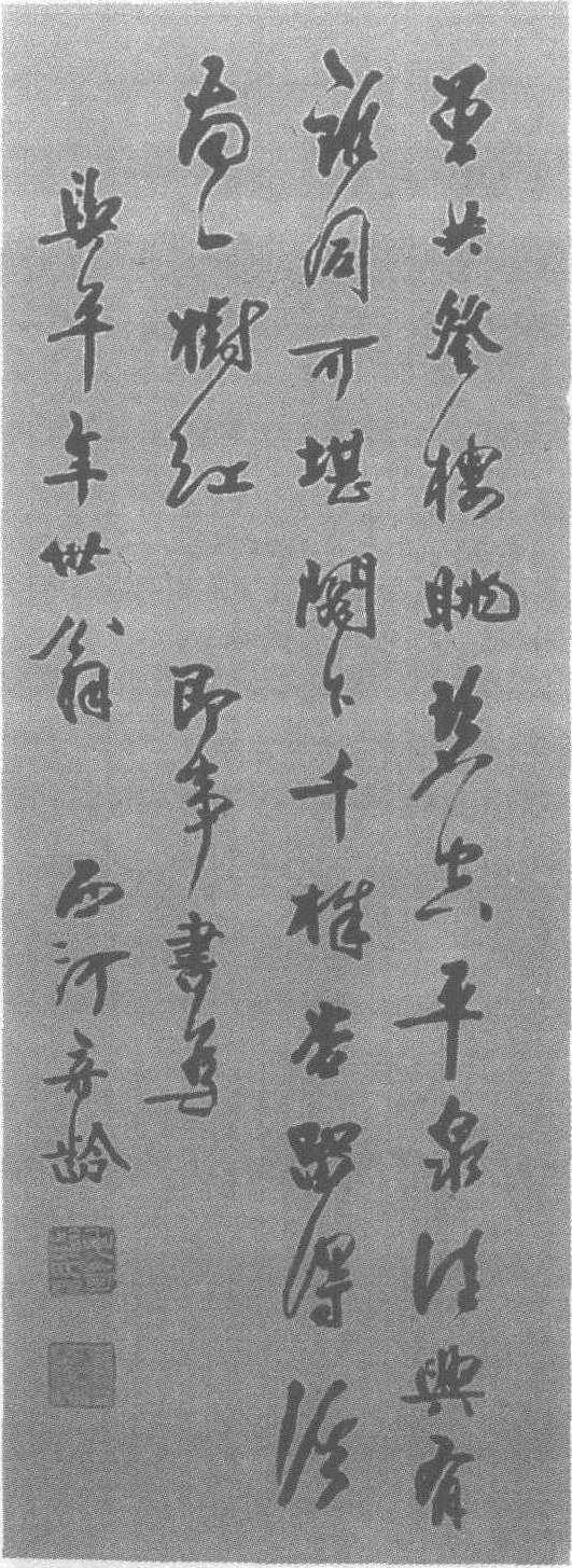 | 释义 | 毛奇龄行书即事书 毛奇龄行书即事书清。纸本。纵115厘米,横40厘米。辽宁省博物馆藏。毛奇龄(明天启三年一清康熙五十五年,即公元1623—1716年,字大可),又字僧开、僧弥、斋于,号秋晴,又号初晴、晚晴、河右僧,学者称“西河先生”,又名甡,浙江萧山人。明季诸生,明亡,隐身山谷,读书土室中。清康熙十八年召试鸿博,授翰林院检讨,充史馆纂修《明史》。博览群书,著述甚富。善书,工诗词古文,亦工绘画,但不多作。著有《西河集》。《清史稿》卷四百八十一有传。此毛奇龄即事诗云:“曾共登楼眺碧空,平泉清兴有谁同,可堪阁下千株杏,留得溪南一树红。”下款署:“即事书与平年世翁,西河奇龄。”行书点画雄强峻秀,雍容舒长,字体方圆姿肆,骨力朴茂,章法错落有致,颇为生动而有情致。