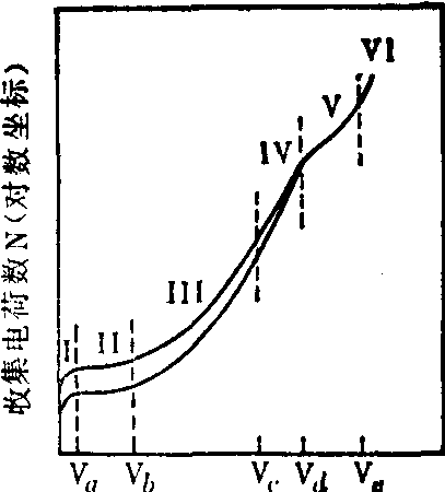气体电离探测器工作原理 在电场作用下,电子向中心阳极漂移,正离子向阴极圆筒漂移,最后为电极所收集。收集电荷数(或离子对数目)与外加电压之间的关系曲线见图2。 图2中第Ⅰ区为低压区,亦称复合区。由于极间电场很弱,已经产生的电子和正离子有相当大的部分又复合成中性分子。 当电压超过Vα时,复合损失已可忽略不计,这时原初电离(即入射粒子直接引起的电离)数几乎全部为电极所收集。故在区域Ⅱ内继续增加电压,收集的电荷数不再有明显增加,称为饱和区。电离室就工作在此区域。 当电压超过Vδ时,收集电荷数又开始迅速增加。这主要是场致电离引起的。原初电离产生的电子向中心阳极漂移时,从电场获得足够的动能,使它和气体分子碰撞时,又能产生次级电离,而电离后的次级电子又为电场所加速,继续产生次级电离,形成所谓Townsend型电子雪崩,因而最后收集到的电荷数比原初电离数大了M倍。M为气体放大倍数,可随电压升高而增大。电压一定时,M是定值。只要M不是太大,电极上收集到的电荷数与原初电离数成正比。因此区域Ⅲ称为正比区。正比计数管就工作在此区域。 在正比区,气体放大倍数除场致电离外,还有光致电离,即受激分子在退激过程中产生的光子,可能在圆筒阴极或气体内打出电子。光致电离的几率比较小。 在饱和区和正比区,收集到的电荷数均与电离粒子的能量成正比。但是当电压超过Vc时,这种比例关系就开始不再保持,进入图2中的Ⅳ区,称为有限正比区或过渡区。出现这种情况的原因是空间电荷效应。当电场增大到一定程度,产生的大量正离子,由于漂移速度慢,滞留在气体空间,形成空间电荷,从而限制了次级离子的倍增过程。 当电压增大超出有限正比区,便进入盖革区(G-M计数管的工作区)。这时,电场在中心丝附近急剧增大,只要有一个电子漂移到中心丝附近,就会形成大量离子对。而且随着气体放大倍数的增大,光子或光电子产生几率就大起来。这样,电子雪崩现象就会沿着整个中心阳极丝扩展,以致整个阳极丝附近都产生大量离子对。电子很快为中心丝收集,所以不管原初离子对是多少,最后收集到的电荷数总是一样的。因此G-M计数管不能区分入射粒子的能量和种类。 当电压继续升高到超过Ve时,计数管进入连续放电区。这是使用计数管时必须避免的。 电离室 就是工作在饱和区的气体电离探测器。电离室工作时,基本上不存在离子对的复合,也没有气体放大的作用。它的结构大致有圆柱形和平行板形两种。 电离室收集的电荷数与射线损失的能量成正比,因此可利用电离室来确定粒子的能量。目前,这方面的应用已几乎全部被半导体探测器所代替。但是作为记录大量入射粒子引起总电离效应的电流电离室,仍然有其优越性。电离室可用来测量射线(包括γ线、X线)强度和物质的吸收剂量。此外,袖珍式累积电离室也还可在某些场合使用。图3是两种具有凹井的圆柱形4πγ电离室。4πγ电离室的优点在于它具有长期稳定性,可以允许直接测量封在安瓿瓶中的γ放射性溶液,容许很宽的测量范围,结构简单,操作方便。 如果选择适当厚度的等效材料作为电极,对于任何一种电离辐射,电离室都能可靠地测量吸收剂量、比释动能或照射量。在这种应用中,除某些剂量学概念外,许多其他有关的注意事项与4πγ电离室类似。 盖革(G-M)计数管 通常为圆柱形结构。中心阳极为约φ0.1mm钨丝,圆筒阴极由铜、不锈钢或内壁喷涂SnCl2的薄玻璃制成。计数管内充以100mmHg柱的氩或氖等惰性气体作为电离气体。此外,还要充以少量有机气体(如酒精)或卤素气体(如溴蒸气)作为“猝灭”气体。这是因为在电场作用下,正离子要向阴极漂移。当