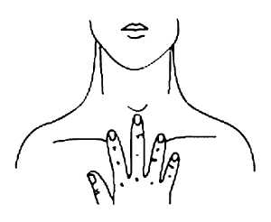 气管移向颈前正中的一侧。嘱病人取端正坐位或仰卧位,使颈部处于自然状态。将右手食指和无名指分别置于左右胸锁关节上,中指置于胸骨柄上窝,对准气管正中,或置于气管之上,观察中指距示指、无名指是否相等。比较气管与两侧胸锁乳突肌间的空隙大小是否一致。若两侧距离或空隙不等,则为气管侧移位。根据气管偏移方向可帮助判定病变的位置。如胸膜粘连、肺不张、肺萎缩、肺硬化等气管移向患侧;气胸、大量胸腔积液时,气管移向健侧。另外,有些疾病导致的气管向前和气管向下移位也属于气管移位的范畴。