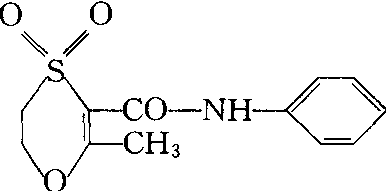 | 释义 | 氧化萎锈灵oxycarboxin杂环类杀菌剂。化学名称:5,6-二氢-2-甲基-1,4-氧硫杂芑-4,-4-二氧-3-甲酰替苯胺。化学结构式如下。原药白色结晶,25℃时水中溶解度为1 000 mg/kg,在甲醇中为7 mg/kg、乙醇30mg/kg、丙酮360 mg/kg、苯340mg/kg、二甲亚砜2 230 mg/kg。1966年由美国尤尼罗亚尔(U-niroyal)公司开发。选择性内吸杀菌剂,其抗菌谱与萎锈灵相同,但由于它在植物体内稳定,不易被氧化成没有毒力的亚砜衍生物。因此,它不仅可作种子处理或土壤处理,更适用于叶面喷洒,对谷类锈病和豆锈病比萎锈灵效果好。对植物安全,对人畜低毒,大鼠口服LD502 000 mg/kg,兔经皮LD50>16 000 mg/kg。