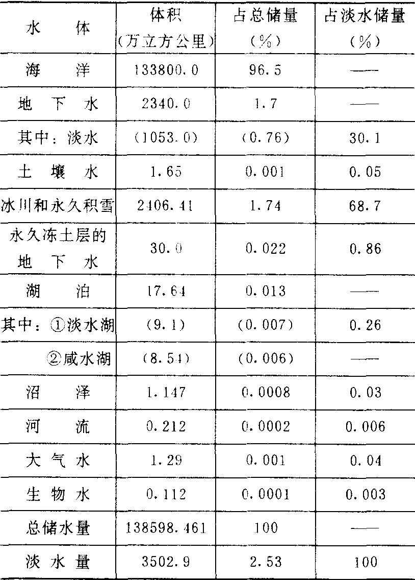 *据《联合国水会议文件》1977年。 表2 各种水体的循环更新期*