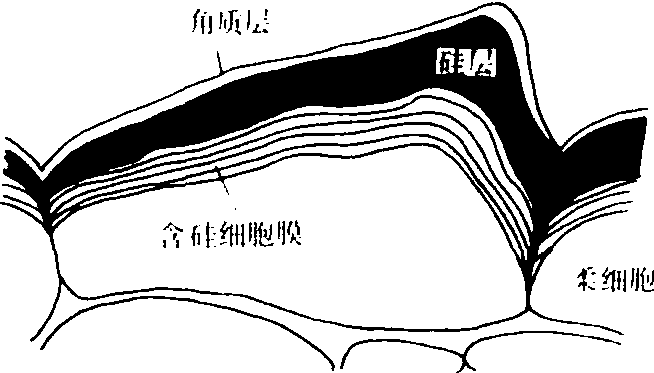 | 释义 | 水稻缺硅诊断diagnosis of rice silicon deficiency根据水稻株型、长相以及植株和土壤含硅量判断是否缺硅。硅是否为植物的必需元素虽未定论,但已公认为水稻生产所必需(农学必需)。在有些国家已被认定为水稻的第四个大量元素肥料,即氮磷钾硅。硅是水稻从土壤中吸收数量最多的元素。成熟时茎叶的SiO2含量通常占干重的10%以上,水稻茎叶燃烧后的灰分,80%左右是SiO2。硅主要以SiO2·nH2O的多硅酸形态存在,集中分布在表皮、维管束、维管束鞘与厚壁组织的细胞壁上,在叶片表皮细胞上形成具有“角质双硅层”(图1)的细胞壁,水稻生育后期叶脉间可以有成行排列的矩形硅化细胞(图2)。硅对水稻生育有多方面的功能:❶增强水稻抗病虫和抗倒伏能力。硅使植株硅质化,可提高对稻瘟病、胡麻叶枯病、小粒菌核病等真菌性病害的抗性以及对螟虫和纵卷叶虫等的抗性,还可提高抗倒伏的能力。