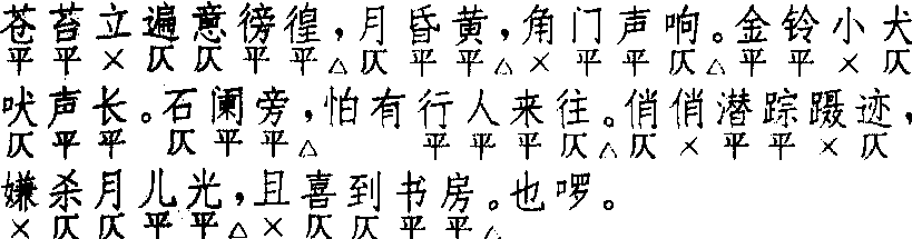 水红花 水红花徐复祚 《红梨记》  全曲九句:7 △,3 △,4 △。7 △,3 △,4 △。6,5 △,5 △。也啰。首三句与次三句句式相同。《精忠记·冥途》少作三句,少见。《风筝误·导淫》二支,第七、八两句都作六字句,并成对语,亦不多见。第九句有作七字句者,七字句比五字句容量大,故重大题材用之,如《长生殿·改葬》、《桃花扇·逮社》。末“也啰”二字为定格。〔水红花〕叠用二支,或二支间用,亦可单用一支。小令常用。《张协状元》第四十七出叠用四支,题〔金莲花〕,一名〔折红莲〕,见钱南扬校注。《小孙屠》第十八出一支,《杀狗记 ·雪中救兄》二支,以上皆早期作品,词式稍有不同。以〔水红花〕为主的集曲有〔花莺皂〕、〔水红叶〕,见《南词简谱》。 ☚ 山坡羊 梧叶儿 ☛ 水红花 水红花水荭。即荭草。一年生高大草木,全株有毛。叶大、卵形。夏秋开花,花白色或粉红色。例同上。 ☚ 狗奶子花 碧桃花 ☛ 水红花药名。见《滇南本草》为荭草之别名,详该条。 |