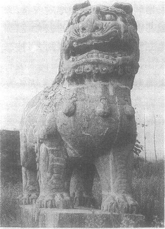 | 释义 | 永定陵石狮 永定陵石狮北宋乾兴元年(公元1022年)。通座高296厘米。河南省巩县芝田宋真宗赵恒永定陵神道的石像生。狮瞋目裂嘴,双耳前倾,鬣毛卷曲如云,颈佩圆铃,昂首挺胸作行进状。神态豪迈庄严,颇具威武之势。