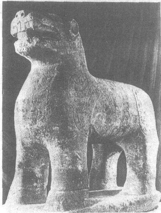 | 释义 | 永陵石瑞兽 永陵石瑞兽西魏。高190厘米,长180厘米。陕西省关中富平县石人塬西魏文帝永陵石雕,陕西省博物馆藏。瑞兽为狮首,骡足。其挺胸收腹,威立于石座上,昂头张口嘶吼。前后肢上端皆有阴刻的火焰纹。此瑞兽造型质朴厚重,雕刻雄浑结实,体现了北朝民族特有的风格。