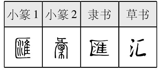 huì匯,形声,从匚,淮声,本义为古代一种器物,假借为水流聚合,由此引申为汇合、综合等。滙,形声,从水,匯省声,本义为水流聚合,引申为汇合、综合等。彙,形声,小篆从 (yì), (胃)省声,本义为刺猬(后作“猬”),假借为类别,由此引申为按类集中、聚集而成的东西、通过邮局或银行等把钱款从甲地寄到乙地等。《异体字表》以“滙”为异体字。近代俗字、《简化字表》把“匯”简作“汇”,据异体字“滙”省略。《简化字表》又把“彙”简作“汇”,采用同音代替。 【辨析】 ❶“匯”与“彙”不是等义繁体字。 ❷以“汇(匯)”作音符构成的形声字一般读kuǎi: (擓)。 ❸“汇(匯)”可作类推简化偏旁使用,如: (擓)。 【构词】 汇报(匯報∕彙報)∣汇合(匯合)∣汇集(匯集∕彙集)∣汇聚(匯聚∕彙聚)∣汇刊(匯刊∕彙刊)∣汇单(匯單)∣汇款(匯款)∣汇拢(匯攏)∣汇率(匯率)∣汇总(匯總)∣电汇(電匯)∣外汇(外匯)∣汇编(彙編)∣词汇(辭彙)∣语汇(語彙)∣字汇(字彙) |