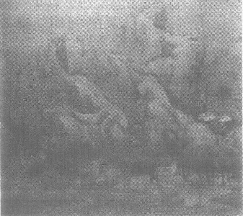 | 释义 | 古代名物 > 雕繪類 > 繪畫部 > 卷軸畫 > 江山秋色圖 江山秋色圖 jiāngshānqiūsètú 舊傳爲宋代趙伯駒所繪作品。絹本,設色,縱五六·六厘米,横三二三·二厘米。以長卷形式展現錦繡河山。重巒疊嶂,嶺岫起伏,輕雲飄浮,碧水漣漪,點綴著茂林脩竹,飛瀑流泉,樓閣臺榭,山徑舟渡。中有車馬行旅翻山越嶺而來,亦有閒散人物亭間小憩。全卷用筆尖細而不纖佻,精工周密;青緑設色,調和藴藉,明快强烈;勾勒填染中,艷麗又多樸拙,顯示蒼潤秀逸的意趣,亦反映出宋代青緑山水之風。圖無款印,明人題爲南宋趙伯駒畫。後幅有明朱標題記。鈐有收傳鑑藏印記十七方。經《石渠寳笈初編》著録。現藏北京故宫博物院。 江山秋色图 107 江山秋色图传南宋赵伯驹画,又疑为北宋高手佳作。绢本青绿设色,描绘深秋辽阔山川郊野景色,画中千岩竞秀,万壑争流,溪水曲折,丛林回环,其间散见楼观屋宇,桥梁栈道,舟车行旅,文人、樵夫,笔法精工之极。用笔尖细而不纤佻,设色秾艳而不庸俗,全画清新秀媚,深远怡静。现藏故宫博物院。 ☚ 千里江山图 芙蓉锦鸡图 ☛ 江山秋色图 江山秋色图传为宋赵伯驹作,绢本设色。曾经明内府、清内府收藏,钤清乾隆、宣统诸藏印。《石渠宝笈初编》著录。《江山秋色图》采用长卷形式,以巧妙的构思、精湛的笔法和色彩展示了深秋山川郊野辽阔壮丽的景色。画面上重山峻岭盘薄绵延,层峦叠巘奇崛峥嵘; 悬崖间行云缭绕,瀑布飞挂; 山下河川回环,碧水涟漪。峰间水畔穿插安排楼观屋宇、栈道廊桥,苍松古树,茂林修竹,错落有致,聚散得宜。流连于山水之间的人物,有三三两两闲步于竹径者,待渡于溪岸,垂钓于水滨者,游人拾级而上,还有居山顶高楼侃侃而谈者。江上小舟荡漾,车马行旅正翻山越岭而来。此图布局采用传统的中国山水画 “散点透视”法,将高远、深远、平远三种方法适当结合起来,以平视或俯视的角度处理景物,造成容量大、布置奇、开合有度的效果,画面变化中有统一,既奇伟壮丽又深邃空灵。笔墨设色继承隋唐以来青绿山水画传统而更臻成熟。山石、土坡以“小斧劈皴”为主,兼以流畅、多变的长线条勾廓,根据景物的形质,山石的纹理,或勾勒,或皴染,工整中灵变不滞,繁密中又极为紧要。笔力秀劲,人物虽小却形态逼真。设色合理,十分得体地表现出景物的阴阳向背、远近晦明。赵伯驹 (1119—1185) 字千里,宋宗室。南宋高宗时曾任浙东兵马钤辖。工青绿山水,师法李思训,风格工致巧整,长于花草、禽鸟、竹石、人物。《江山秋色图》无作者款印,也无元明以前收藏印记和题跋,故近人提出质疑,或谓系出自北宋画院高手。