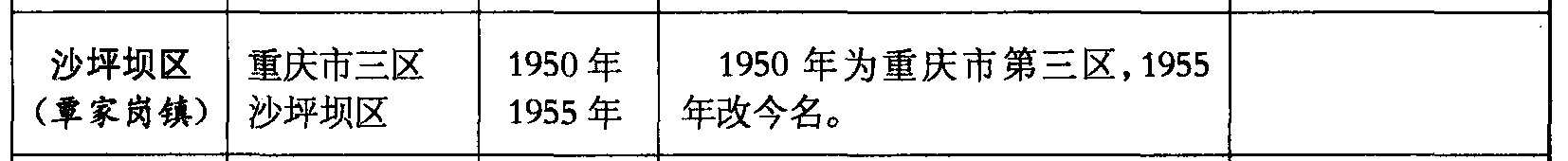 沙坪坝区(覃家岗镇)重庆市三区沙坪坝区1950年1955年1950年为重庆市第三区,1955年改今名。