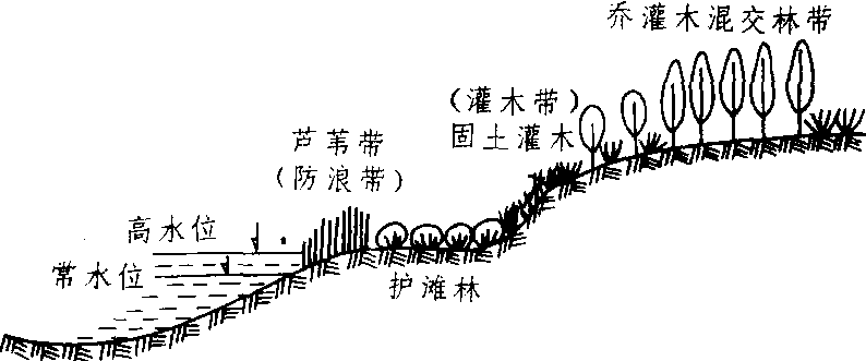 | 释义 | 河岸防护林river bank protective forest为保护河岸,稳定河道,防止水流对河岸的冲刷和河坡的水土流失,而沿河岸营造的带状防护林。河岸防护林包括河道水面附近栽植的芦苇、柳树等防浪护岸的水生植物或耐水乔灌木(防浪林),有河滩地的包括护滩林,陡岸边缘部分的固土灌木或根蘗性乔木,以及岸坡至岸边的乔灌木混交林带。河岸防护林宽度按实际需要而定,宽的达数十米甚至上百米。
