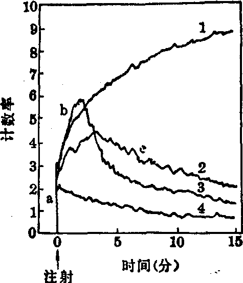 式中C为清除率,Q为示踪物注入量,Ka和Kb为由心前区放射性下降曲线分解所得两条指数曲线的下降斜率,A和B为两条指数曲线的零时计数率(图4)(参见“示踪动力学”条)。 有人提出了更为简单的方法,只求出放射性下降曲线某一段的下降斜率K和相