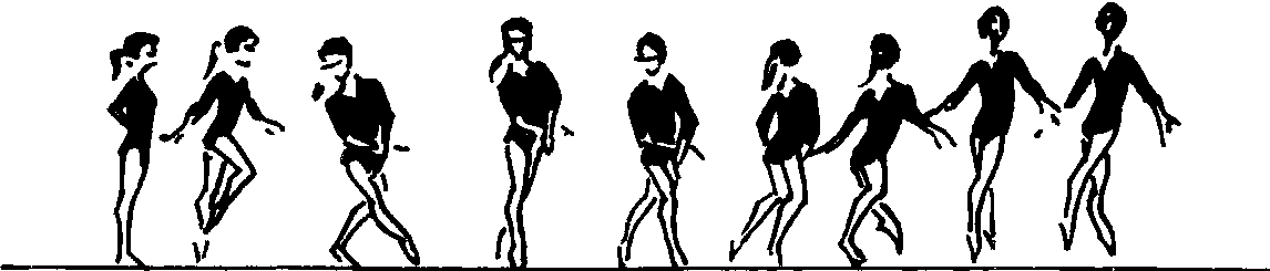 | 释义 | 波尔卡步 波尔卡步英文Polka Step的音译。基本舞步之一。在两个滑步换腿前做一单腿快速小跳,即跳—走—并—走。它是19世纪欧洲流行的一种2/4拍子的对舞,是一种轻快活泼的舞步,可向前、向后或旋转。动作要领(向前的波尔卡步):两手叉腰,自然站立。节拍前动作:右脚小跳1次,落地稍屈膝,同时左腿屈膝前下举;1—左腿前伸滑出,右腿并于左脚;2—上半拍左脚再向前走1步,下半拍左脚小跳,落地时稍屈膝,同时右腿屈膝下举。教学重点: ☚ 卡洛泼步 柔软跑 ☛ 波尔卡步 波尔卡步Boerkabu基本舞步之一。是由并步跳、迈步、单脚跳交替组成的舞步。波尔卡起源于捷克的一种排列成行的双人舞蹈,用2/4拍的舞曲伴奏,具有欢快、活泼的特点。作为韵律体操的基本舞步有直膝、屈膝, 可向前、向侧、向后及转体做。其做法: 节前拍左脚小跳,右脚前下举,第1拍,右脚向前滑出做一次并步跳,第2拍,右脚再向前一步跳起,左脚前下举, 第3、4拍, 换脚做, 动作相反。