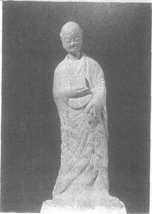 北魏。高25厘米。甘肃省天水市麦积山石窟库藏第150号。沙弥是指7—20岁受过十戒的出家男孩儿。此沙弥年龄尚小,身材瘦长。内穿僧祗支,下着长裙,外披袈裟,左手轻轻牵衣,右手捧物,扭动腰肢,正在行进当中。面庞方圆适中,眉宇间尚存儿童的天真稚气。这一立象的塑造工艺细致,将孩童所特有的柔嫩肌肤也生动地表现出来。更为引人注视的是沙弥的羞涩笑容,它流露出一颗纯真的童心,唤起人们对少年儿童的无限爱心。