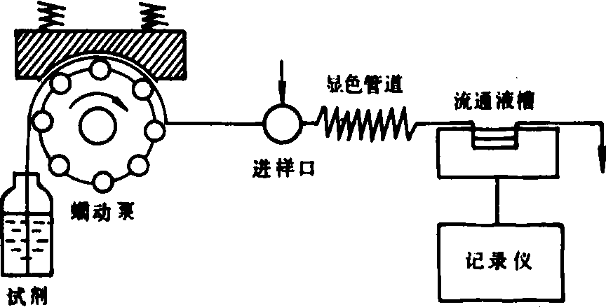 流动注射分析系统示意 分析原理 流动注射分析的所有测定都不是在反应达平衡状态下完成的。在无气泡间隔的情况下,注入试剂载流中的试样区自由地进行分散。控制这种分散过程使其恰好适于某一分析方法的需要是流动注射分析的关键。分散过程包括扩散和对流,两者同时发生。在保持完整试样区(“试样塞”)的情况下,可把试样与试剂的混合由扩散过程控制在试剂与试样的界面,从而可得到完全重复的混合状态,在显色时沿着液体流动的方向得到完全重复的颜色梯度变化。除扩散过程外,对流也是使试样区发生分散的因素。对流的产生是由于管道中心部分与靠近管壁处液体流动的差异所致。由于这种对流作用,在流动中的试样区的前沿和后尾均会形成指向前进方向的抛物面。与此同时,溶液的分子也向四面八方扩散。在检测器处所录得的峰形就是对流扩散与化学反应过程的综合反映。由于进样及扩散过程和试样在管道中存留的时间均可精确控制,在流动注射分析中就没有必要一定使反应达到稳定平衡状态,从而可大大加快分析速度。 特点 ❶分析速度极快。一般可达100~200样/小时,有些分析项目甚至可达420样/小时,即每7~30秒为一分析周期。 ❷分析精度高。相对标准差可达1%左右。很多用手工法难以准确完成的比色反应用流动注射法常易达到较高的分析精度。 ❸操作简便。流动注射分析将化学分析中常用的操作均在管道体系中自动完成,分析操作变得十分简单。 ❹设备简单。可自己用比色计(或离子选择电极等其他检测器)、蠕动泵、旋转阀、恒温水浴、记录仪等设备组装。 ❺节省试剂和试样。试样量可小至数微升至数十微升。试剂消耗量也可减少至每种试剂数十微升。 ❻适应性广。可用于多种分析化学反应,电化学反应,原子吸收测定,甚至复杂的萃取过程。 应用 流动注射分析在农业、环保、药学和临床医学领域的研究和日常分析工作中的应用有极其广阔的前景。在农业化学分析中可以用比色或分光光度流动注射分析测定植物和土壤中的氮、磷和锰;用比浊流动注射分析测定植物中的硫酸根;用溶剂(异戊醇)萃取流动注射分析测定植物中的钼;用合并带流动注射分析,以原子吸收光谱和火焰光度计为检测手段测定植物中的钙、镁、钾;用离子选择电极流动注射分析测定植物、土壤、肥料中的K+、Na+、NO-3、Cl-和F-;用合并带流动注射分析测定土壤、植物中的铝(分光光度法);用带还原柱的流动注射分析同时测定土壤浸出液中的NO-3和NO-2。此外,流动注射分析还可测定血清及其他生化样品中的K+、Na+、NO-3、Ca2+、pH、尿素、葡萄糖和血清蛋白。 |
