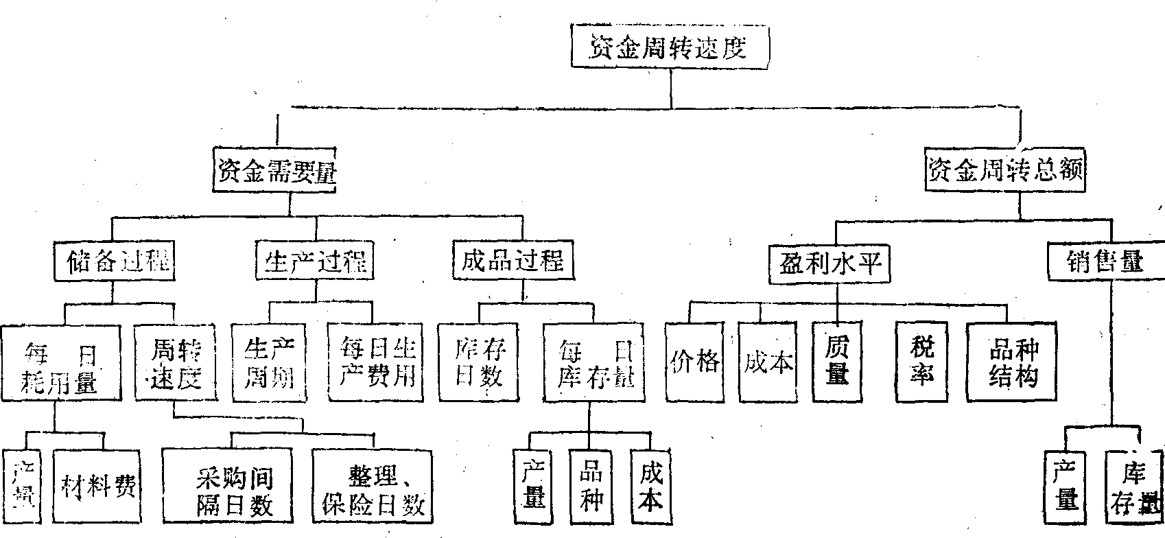 实际工作中,流动资金的平均占用额,是指定额流动资金的平均占用额。 影响流动资金周转率变化的因素颇多,现以一般工业企业为例图示如下: