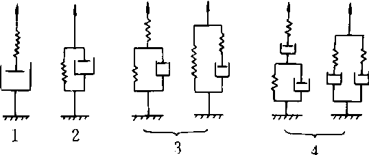 常见流变模型 1.麦克斯韦模型 2. 开尔文模型 3. 三参数模型 4. 四参数(伯格斯)模型 |