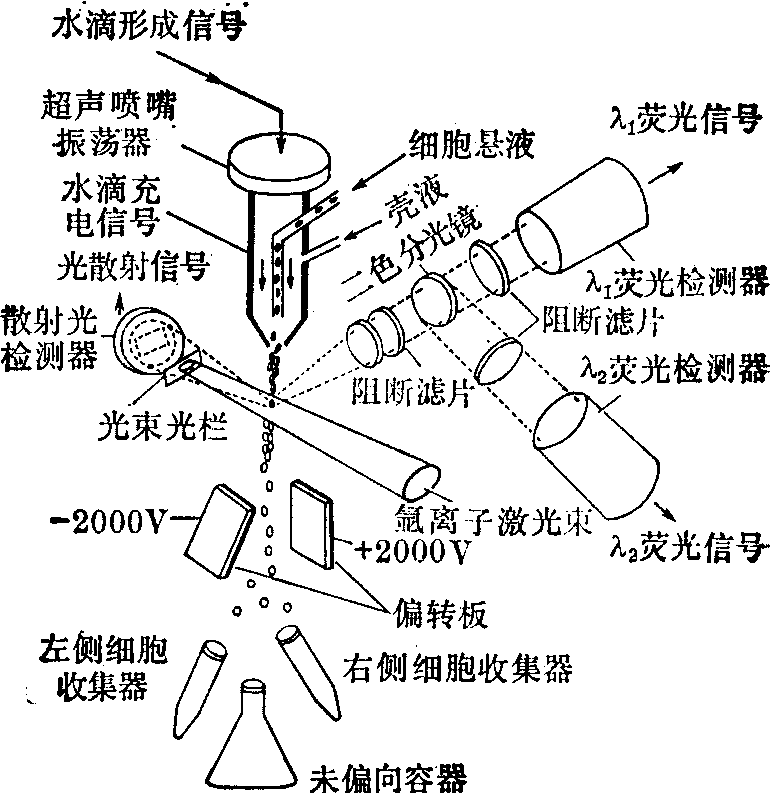 | 释义 | 流式细胞光度术 流式细胞光度术流式细胞光度术(FCP)又称流式细胞术(FCM)、流式显微荧光光度术(FMF)、脉冲细胞光度术(PCP)或荧光激活细胞分类术(FACS)。是一种对单细胞或亚细胞颗粒进行定量分析和分类的技术。其主要特点是能以每秒钟测定上千个细胞的速度,同时测定Coulter电阻、荧光、光散射和光吸收来定量测定细胞DNA含量、细胞体积、蛋白质含量、酶活性、细胞膜受体和表面抗原等许多重要参量。根据这些参量可将不同性质的细胞分开,获得供生物学和医学进行深入研究用的纯细胞群体。